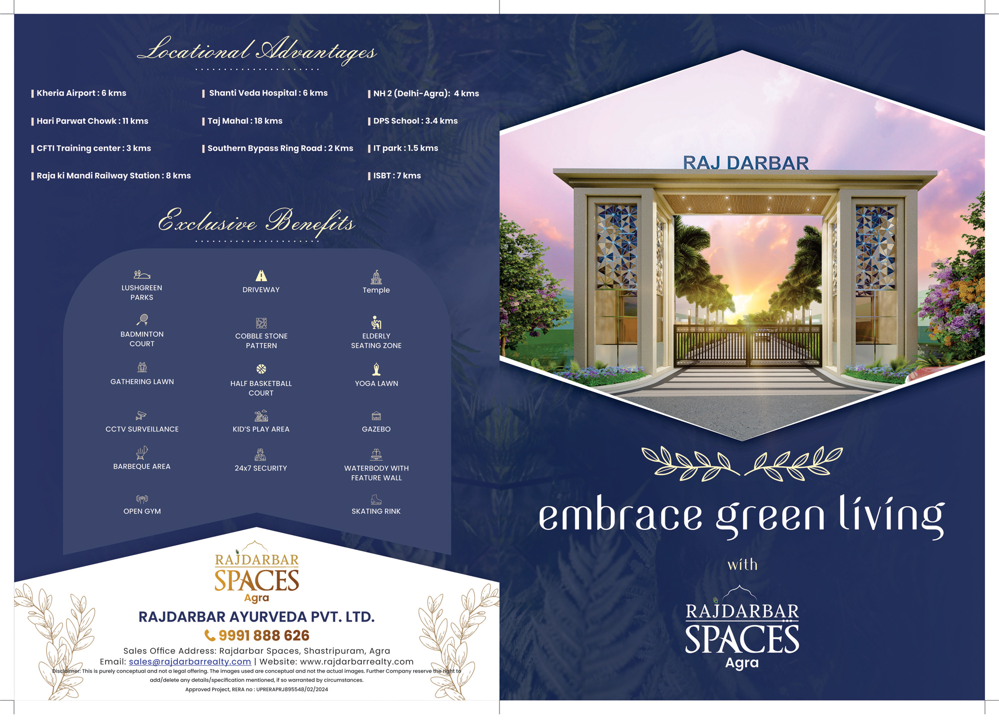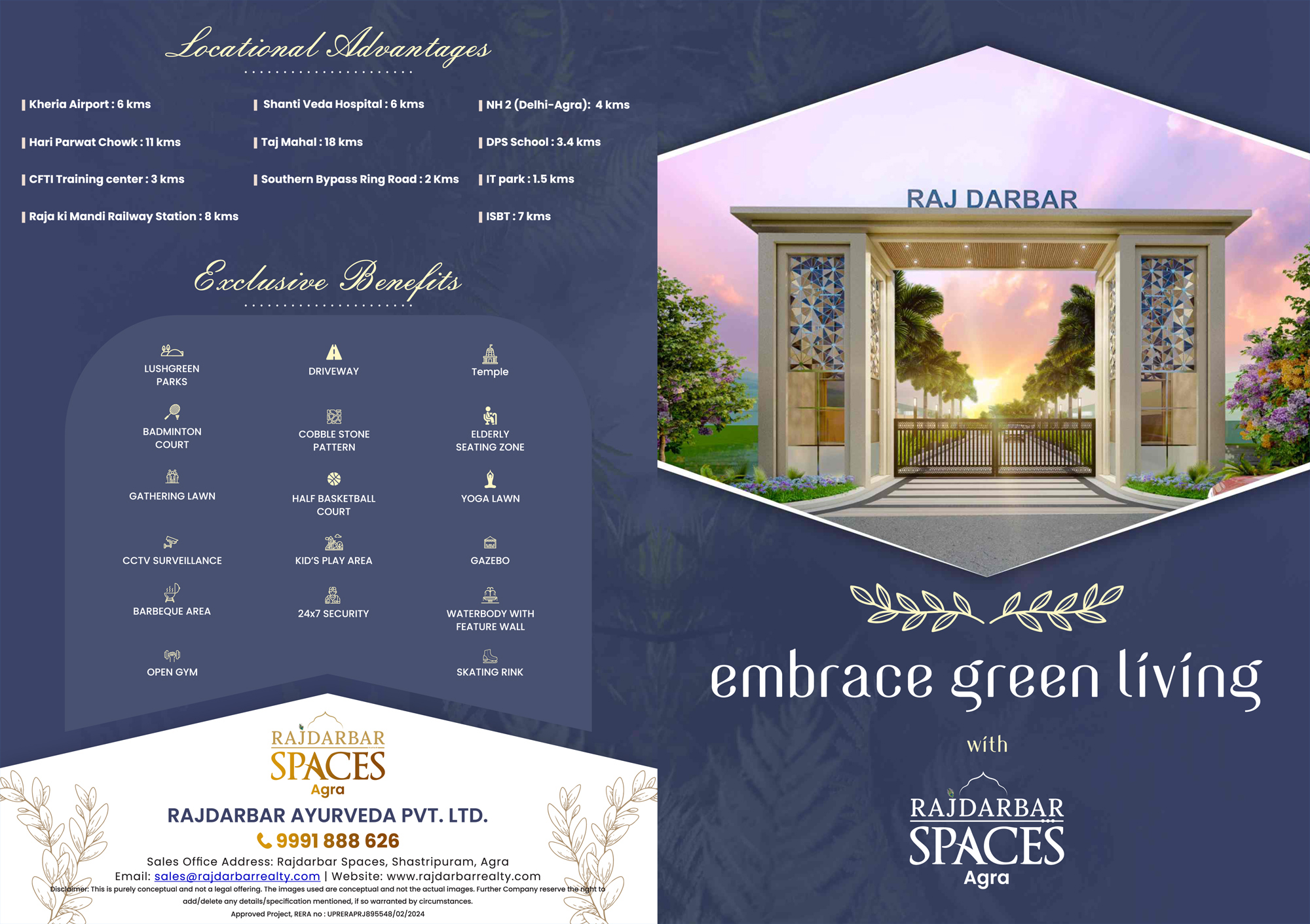 Agra, known for the magnificence of its Taj, is also now the home of Royal Class housing. With the inception of Rajdarbar Spaces at Agra (Formerly known as Narsi Village, Agra), Rajdarbar Spaces Phase 3 (formerly known as Narsi Village) Agra has ensured that Agra's illustrious past gets a beautiful future as well.